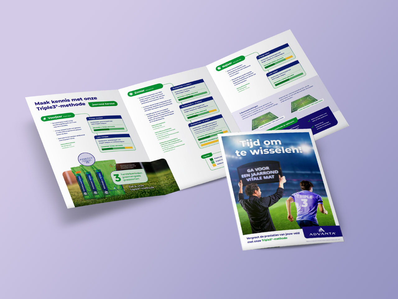 De nieuwe aanpak van Advanta is veel omvattend en heeft uitleg nodig. Daarom kozen we ervoor om de communicatie zo helder mogelijk te houden en met een sterke, herkenbare beeldmetafoor te werken. In de middeleninzet kozen we voor een balans tussen het enerzijds prikkelen, en anderzijds informeren van de sportveldbeheerders. KR verzorgde het campagne-concept, het ontwerp, de fotografie en de uitwerking van de beursstand, advertenties, een informatieve én wervende direct mailing en online banners.