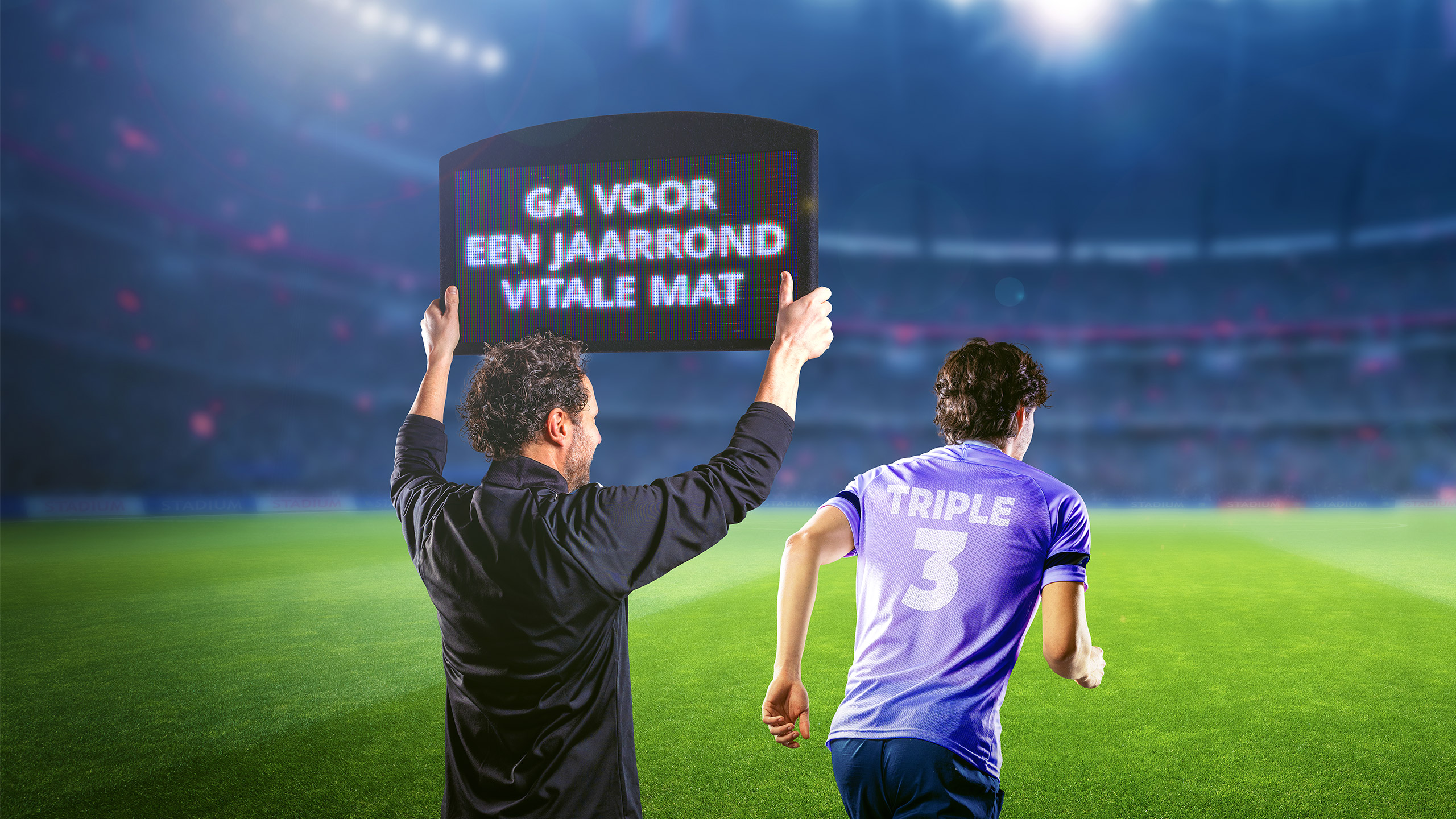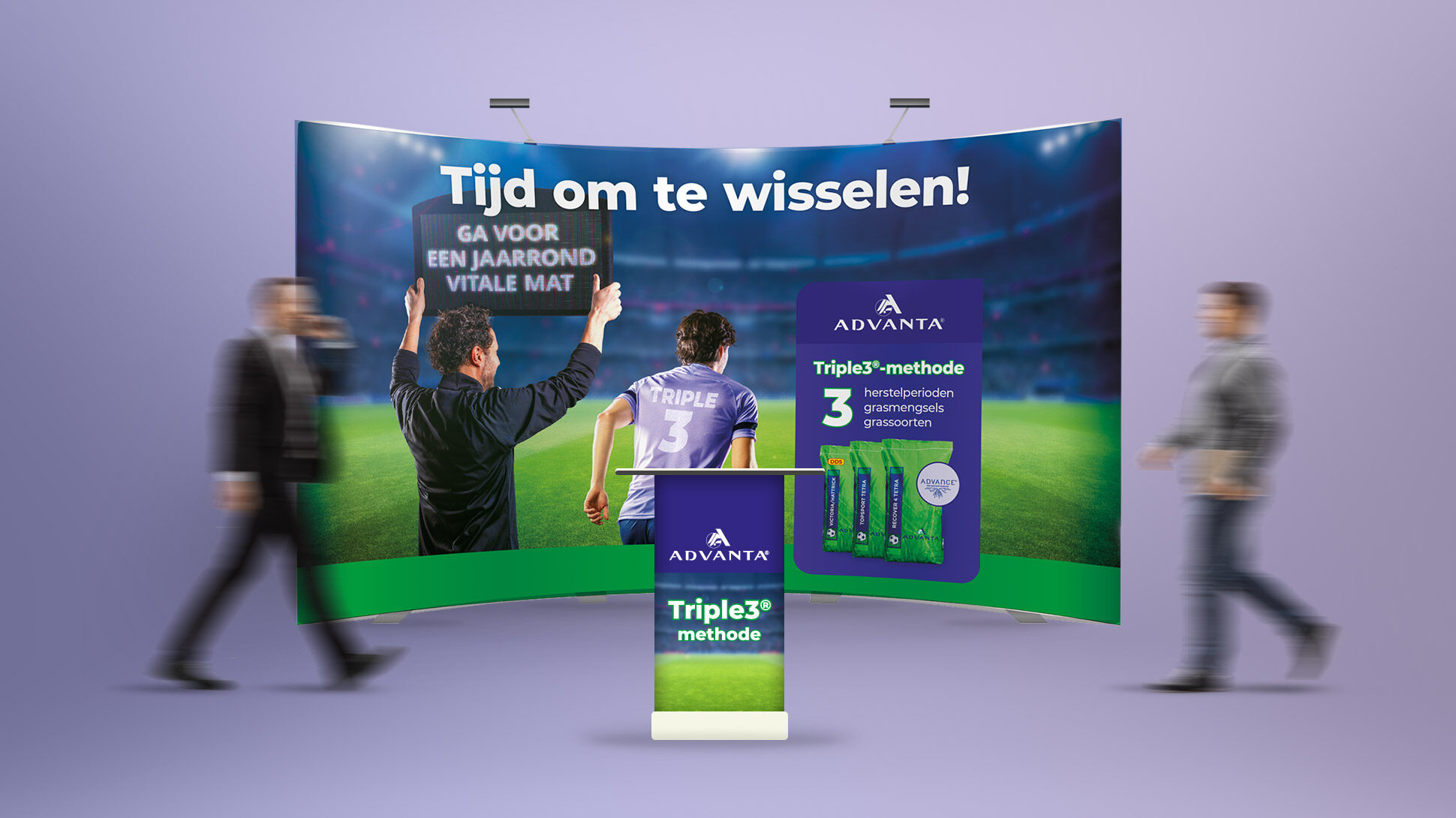 Voetbal is de grootste sport op de Nederlandse sportvelden. Daarom kreeg voetbal een rol in het ontwikkelde concept, maar natuurlijk wel met een creatieve twist. Sportveldbeheerders moeten echt van de standaard aanpak af en overgaan naar een jaarrond specifieke werkwijze. Daarom roept Advanta ze op tot een wissel. Uiteraard met een dikke knipoog naar de spelerswissel die je ziet tijdens voetbalwedstrijden.