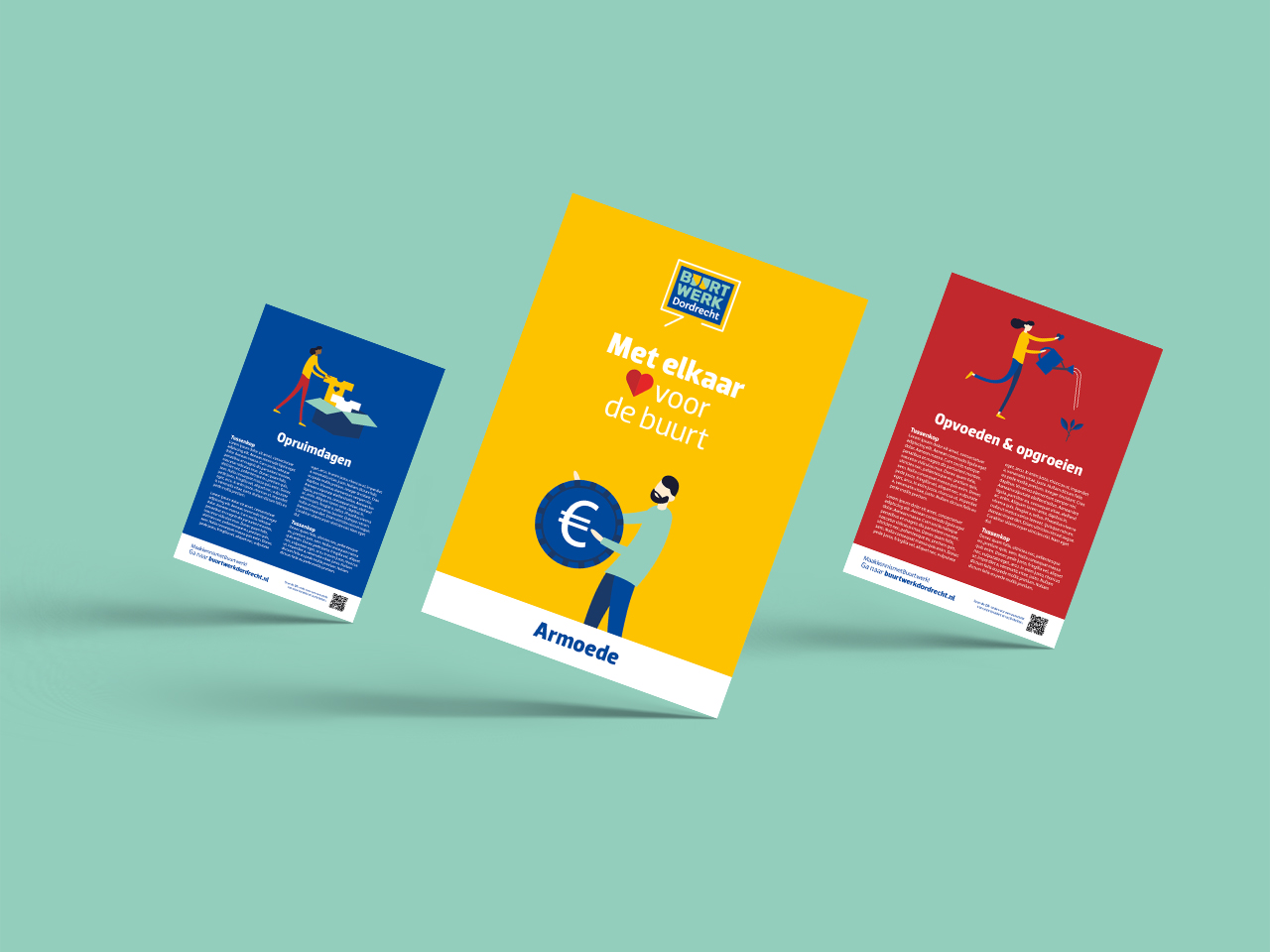 We zijn als echt Dordts bureau trots dat wij in 2019 de visuele identiteit mochten ontwikkelen waarmee Buurtwerk Dordrecht op de kaart werd gezet. Steeds meer Dordtenaren weten Buurtwerk Dordrecht nu al te vinden, maar een deel kent hen nog niet. Met de campagne ‘Met elkaar hart voor de buurt’ creëren we zichtbaarheid voor Buurtwerk Dordrecht in de wijken.