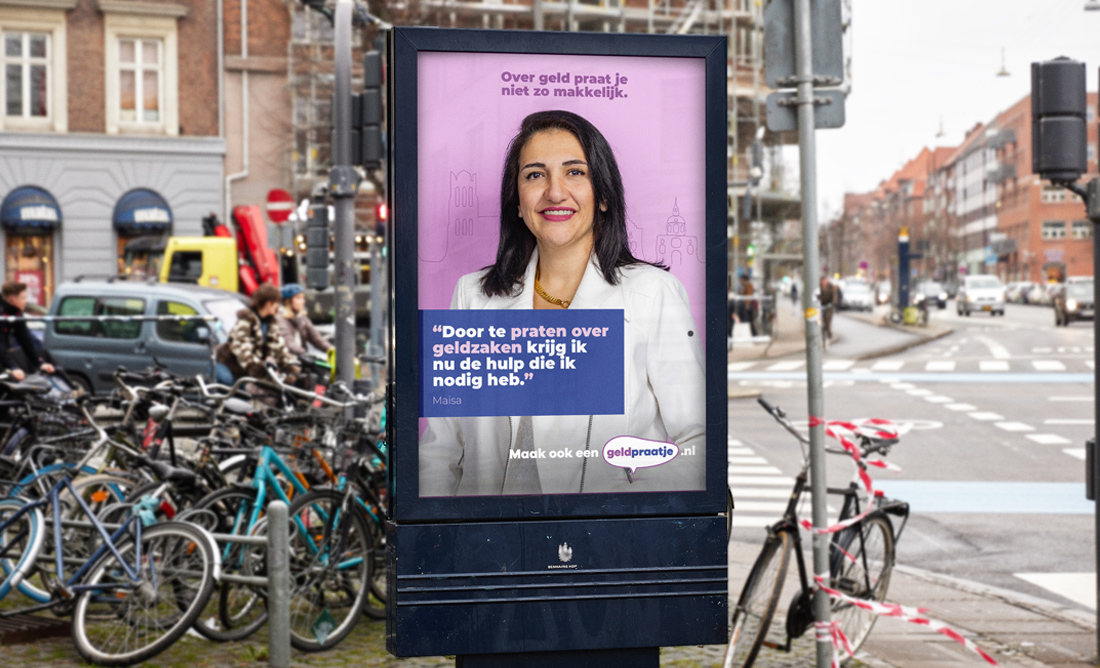 Eén van onze inzichten was dat vrijwel iedereen in de doelgroep aangaf dat hun situatie verbeterde op het moment dat ze erover spraken met iemand. Die kon ze doorverwijzen, tips geven of zelfs helpen. Een ander aspect was het aanwezige wantrouwen richting sommige overheidsorganisaties. Daardoor wordt, hoe goed bedoeld ook, sommige informatie niet meer aangenomen door een deel van de doelgroep. En dat terwijl de doelgroep wel veel vertrouwen heeft in het sociale netwerk en organisaties dat dichterbij hen staat. Daarom hebben we ervoor gekozen om die organisaties te betrekken bij de aanpak. Zij zijn geloofwaardig, menselijk en benaderbaar.