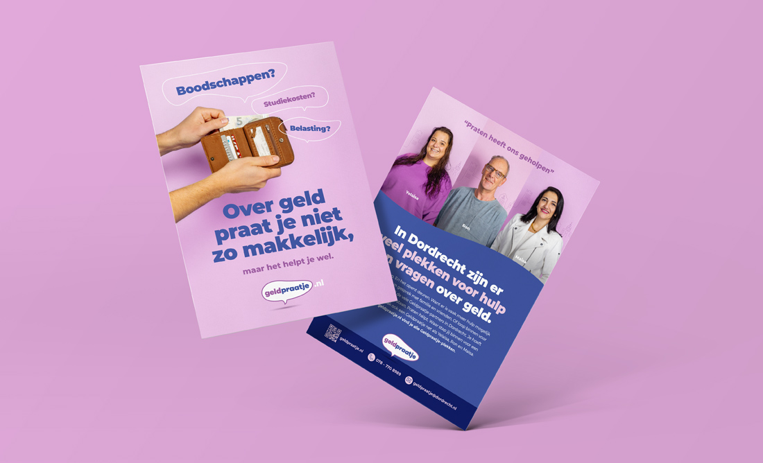 Het is niet zo makkelijk om over geld te praten. Het is zelfs nog moeilijker om over geldzorgen te praten, maar dat is wel precies wat we hebben gedaan. In de verkenningsfase spraken we meer dan 40 mensen die heel goed weten hoe is het om te kampen met geldzorgen. We spraken ook met organisaties die zich dagelijks inzetten om Dordtenaren te helpen. Dat bij elkaar gaf ons de benodigde insights en context waarmee wij de communicatiestrategie bepaalden.