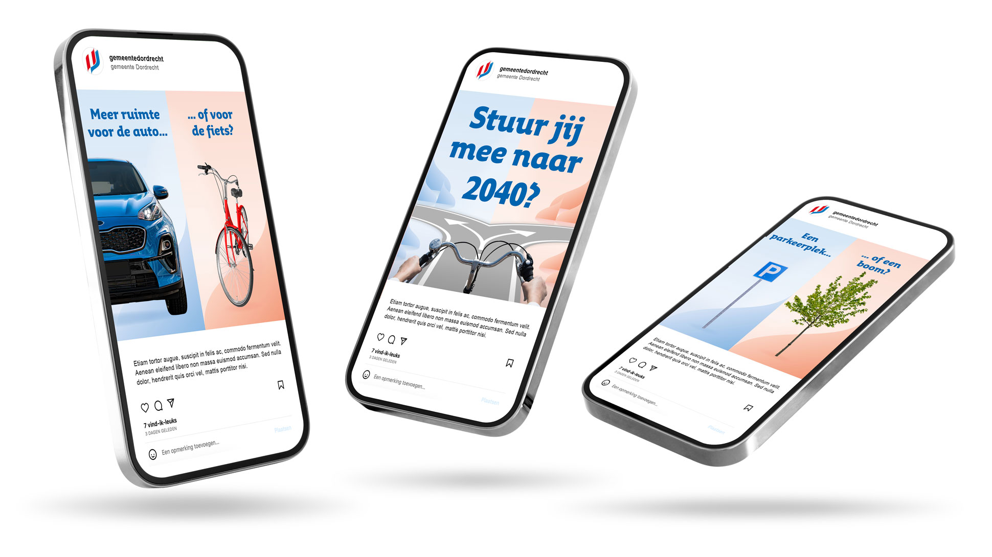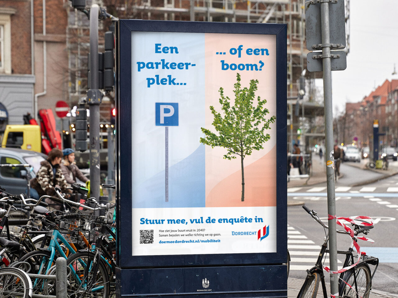 Hoe gaan we in 2040 van A naar B? Hoe ziet de straat, wijk en stad er dan uit? Vragen die de gemeente Dordrecht samen haar inwoners wil beantwoorden. De gemeente zet burgerparticipatie in om mee te denken over mobiliteit in de toekomst, met als doel om verschillende perspectieven in de samenleving beter te begrijpen en daarop de mobiliteit te kunnen aanpassen. Om deze participatie op gang te krijgen ontwierpen we een opvallende campagne. Met prikkelende stellingen daagden we inwoners uit om zelf mee te denken.