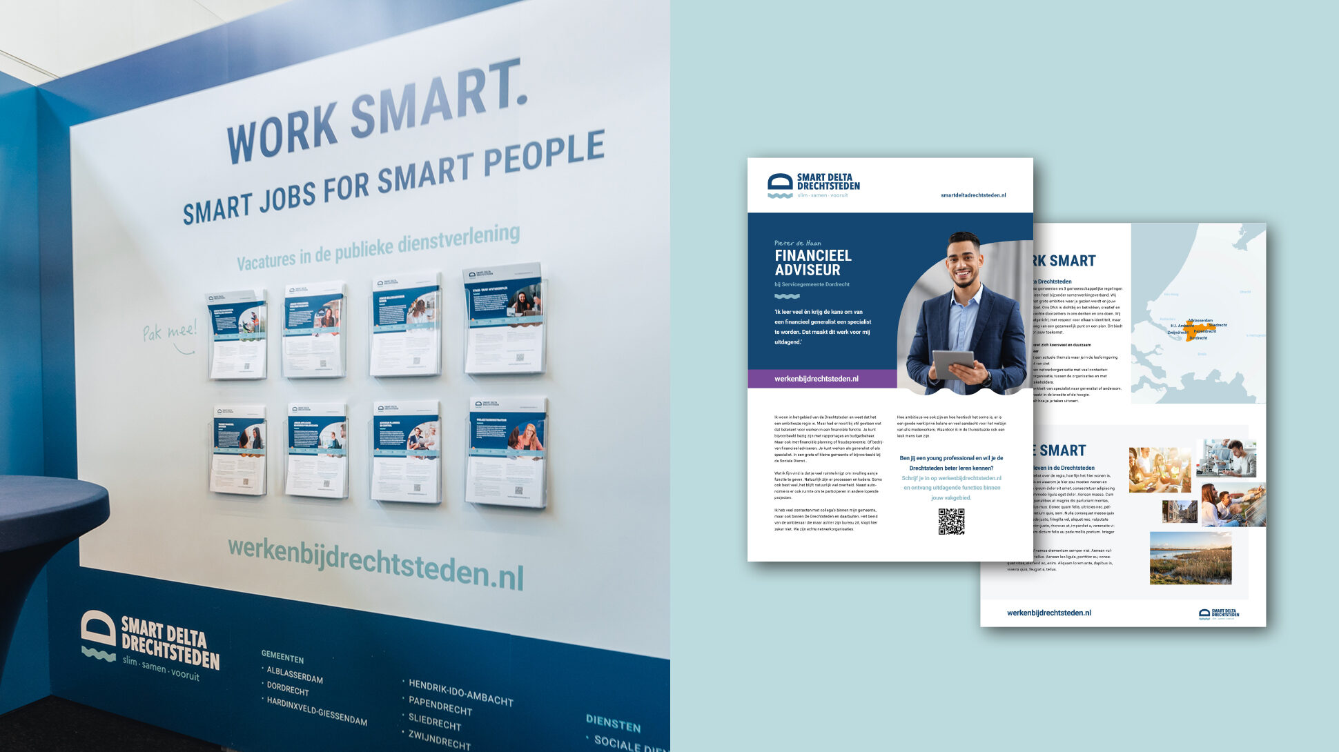 Om de employer branding van Smart Delta Drechtsteden te ondersteunen ontwikkelden we het “Work Smart. Live Smart.”-concept. Zo positioneren we de regio als een inspirerende en innovatieve plek om te werken én wonen. Het idee vertaalden we door naar concrete middelen. We waren ook verantwoordelijk voor de inkoop van diverse items.