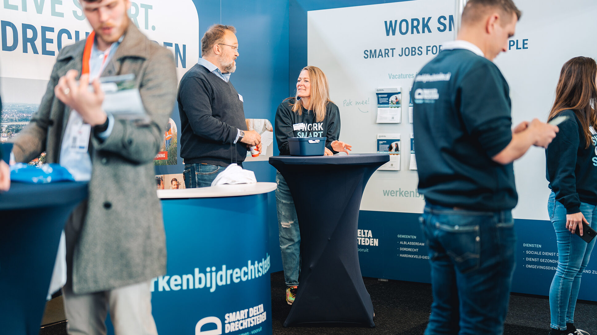 Smart Delta Drechtsteden was aanwezig op de Nationale Carrièrebeurs. Op dit event is het belangrijk om op te vallen bij de juiste mensen. Voor de beurs verdeelden we de beursstand aan de hand van verschillende relevante thema’s. Om opvolging en de kans op succes te verhogen, ontwierpen we een herbruikbare vacature-kaartenbak-muur met concrete young professional vacatures. Met niet alleen informatie over de vacature maar ook over de aantrekkelijkheid van de regio. Het resultaat was een grote stijging van het aantal bezoekers van de vacaturewebsite; werkenbijdrechtsteden.nl en van aanmeldingen voor de vacature alerts.